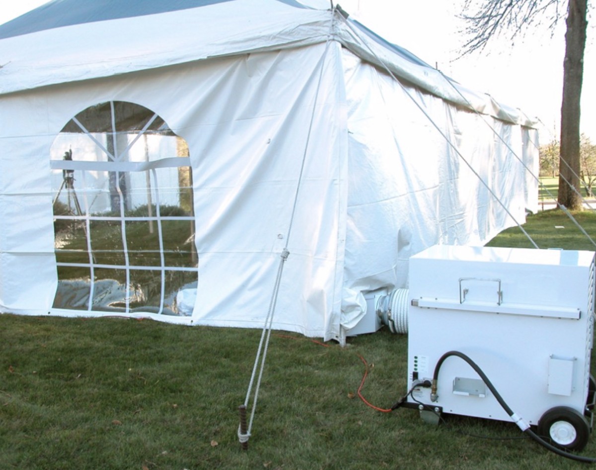The inventory includes tent and patio heaters, electric heaters, portable AC units, fans, and other climate control solutions suited for events of all sizes, from intimate gatherings to large multi‑day productions.